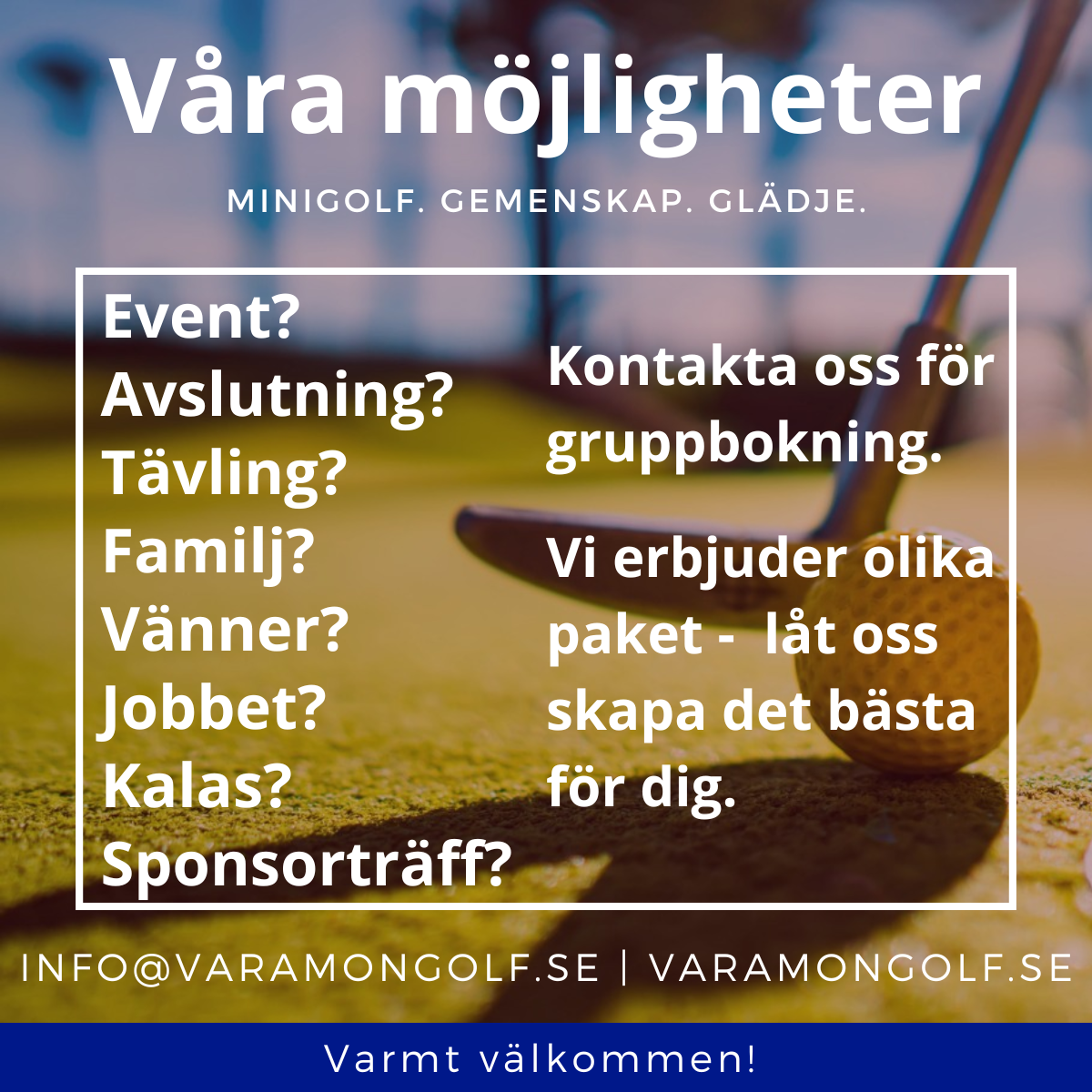 | Klippkort - betala för 10 och få 13. Finns att köpa i kassan eller digitalt på https://clubs.clubmate.se/varamongolf/ Vill du beställa till företaget/föreningen? Mejla info@varamongolf.se. | |